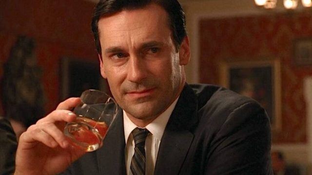 As it turns out, the Old Fashioned is a favorite of Don Draper, Mad Men’s protagonist. He makes it classically old fashioned, using sugar and water, rather than syrup. His is made with bourbon or rye whiskey (which he discusses), sugar, bitters, a dash of water, and a twist of orange peel. He muddles then sugar and orange with the water.