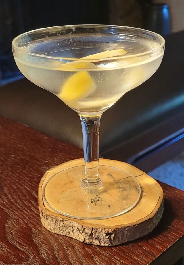I must admit, Gentle Reader, that Goldfinger was the first Bond movie that drew me to a new cocktail. As I explained before, during the COVID pandemic I made a nice list of James Bond films, and proceeded to watch them in order. Watching Goldfinger I noticed that when he visited Churchill Downs, he was served a mint julep, and I was so moved, I paused the movie, and made myself a mint julep myself. I muddled some fresh mint leaves into some simple syrup in a glass, added bourbon, and then filled the glass with crushed ice and garnished it with another sprig of mint.